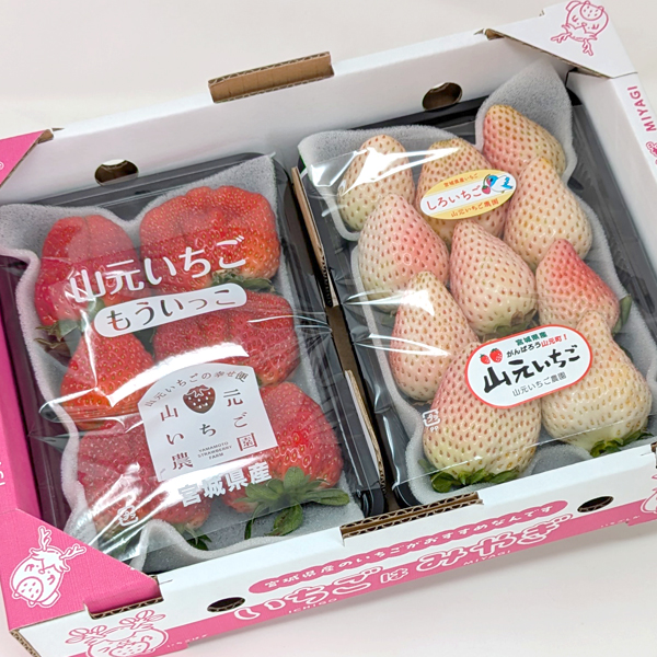 馴染み深い赤いいちごと、希少な白いいちごが食べ比べできる、見た目も紅白で華やかな平詰めパックです。